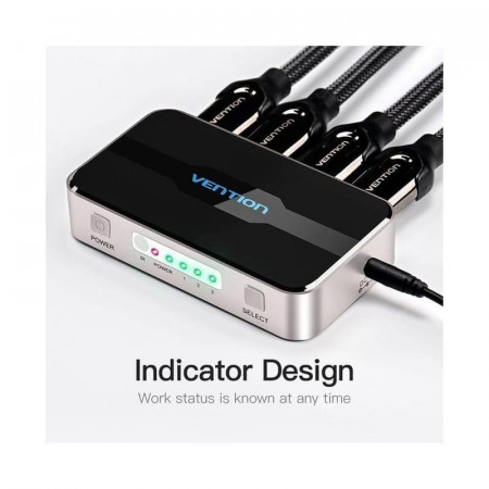 El Vention AFFH0 es un conmutador HDMI diseñado para ofrecer una solución práctica y eficiente para conectar múltiples dispositivos a una sola pantalla. Con este conmutador, puedes alternar entre tres fuentes HDMI diferentes sin la necesidad de desconectar y reconectar cables constantemente.