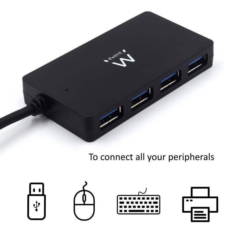 Amplía las capacidades de conexión de tus dispositivos con el Hub USB 3.2 de 4 puertos de Ewent. Este compacto y potente hub te permite conectar hasta cuatro dispositivos USB a tu ordenador o portátil de forma simultánea, facilitando la transferencia de datos y la conexión de periféricos.