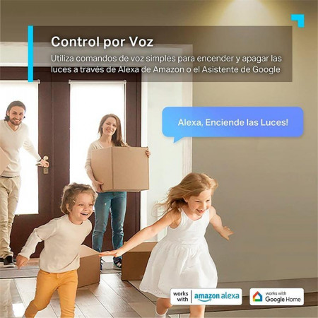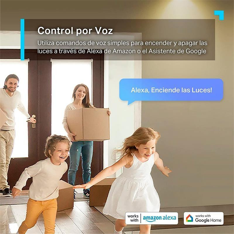 Disfruta del control por voz, compatible con Amazon Alexa y el Asistente de Google, para encender o apagar las luces con simples comandos. Programa horarios para que las luces se enciendan o apaguen automáticamente, adaptándose a tu rutina diaria y ahorrando energía.