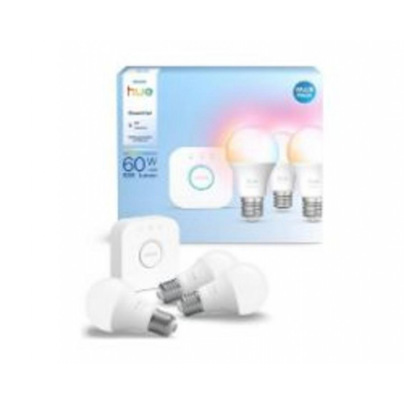Ilumina tu hogar de forma inteligente con el pack de 3 bombillas Philips Hue E27 800L. Controla la intensidad y el color de la luz desde tu smartphone y crea ambientes personalizados para cada ocasión. Equivalente a 60W.