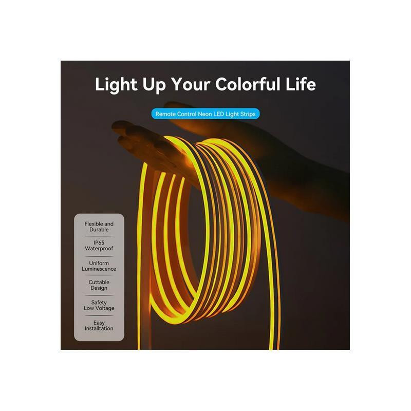 La tira LED de silicona neón RGB de Vention es una solución de iluminación versátil y atractiva para cualquier espacio. Con su diseño flexible y resistente al agua, esta tira LED de 1 metro se adapta a una variedad de aplicaciones, desde la decoración del hogar hasta la iluminación de ambientes de juego.