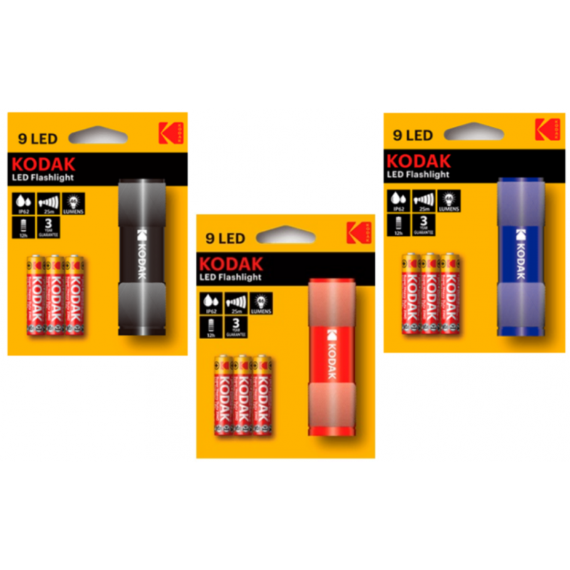 La Linterna Kodak 9 LED es la compañera ideal para todas sus necesidades de iluminación, combinando potencia y durabilidad en un diseño compacto. Equipada con 9 diodos emisores de luz (LEDs), proporciona una iluminación brillante y constante, perfecta para entornos con poca luz o para uso en exteriores.