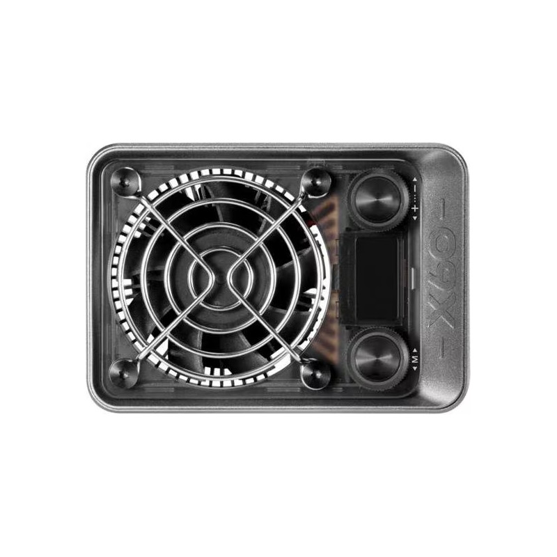 de 6500K y 100% de brillo durante la prueba a una distancia de 1 metro -Temperatura de color: 2700 - 6500 K -CRI: ≥95 -TLCI: ≥97 -Enfriamiento activo -Modo en vivo / modo música -9 efectos de luz -Control de aplicación vía Bluetooth -Capacidad de la batería: 2550 mAh, 21,6 V -Capacidad nominal de la batería: 55,08 Wh -Duración de la batería ZHIYUN MOLUS (100% potencia): 50 min -La batería tipo X60, diseñada como mango, está en funcionamiento y completamente cargada. -1. establezca el brillo del X60 al 100%. -2. establezca la temperatura de color del X60 en 6500 K. -3. Mida el tiempo desde el encendido hasta la descarga completa de la batería. -Tiempo de carga de la batería vía PD: 2:30 h (19,78 V, 1,45 A, 28 W) -(a temperatura ambiente 25; la batería diseñada como mango se carga cuando está apagada) - Tiempo de carga de la batería vía QC: 4:00 h ( 12 V, 1,48 A, 18 W) - (a temperatura ambiente 25ºC; la batería diseñada como mango se carga cuando está apagada) - Máx. Potencia de carga de la batería ZHIYUN MOLUS 60 a través de USB-C: 30W -Máx. Potencia de carga de la batería ZHIYUN MOLUS diseñada como mango: 30 W - Temperatura ambiente para cargar la batería: 0 a +40 - Voltaje/corriente de entrada del adaptador de corriente: 100 - 240 V (50/60 Hz), máx. 1.5A -Voltaje/corriente de salida del adaptador de corriente USB: 24V/2.7A -Voltaje de funcionamiento: 24V/DC, PD ≥9V -Potencia de entrada PD: ≥18W -Ajuste de brillo de rango: 0 - 100% -Posibilidades de expansión: 1/4 pulgadas orificio roscado (estándar) -Dimensiones sin batería (L x D x H): 100 x 71 x 56 mm -Peso neto: 313 g - Se entrega con: Molus X60, mini-reflector, cúpula difusora, adaptador de corriente con cable.