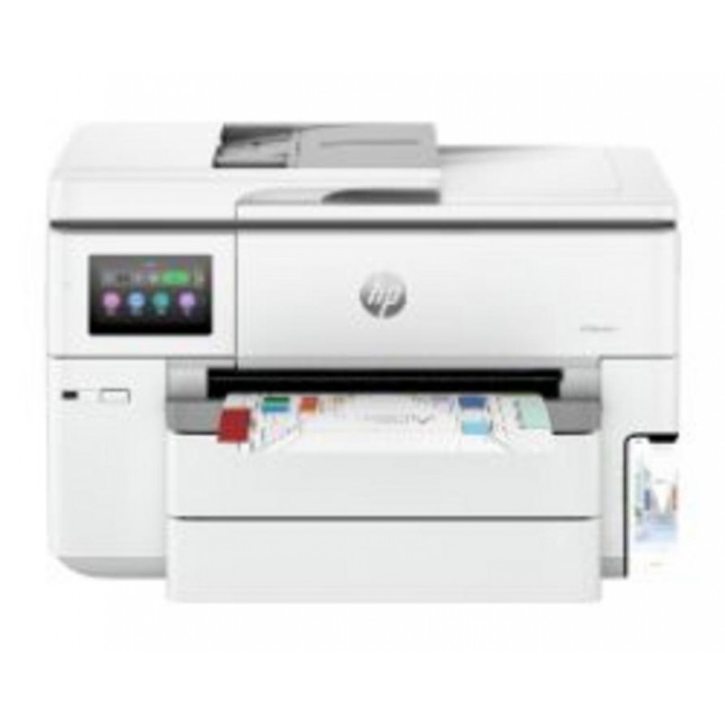 Impresora multifunción HP OfficeJet Pro 9730e con pantalla táctil CGD de 4.3 pulgadas. Disfruta de impresiones a color de alta resolución (4800x1200dpi) en formato A3, función dúplex automática y alimentador automático de documentos (ADF). Conectividad completa: 2xUSB 2.0, 1xRJ45, WiFi 5 y Bluetooth. Diseño elegante en gris/blanco, ideal para tu oficina.