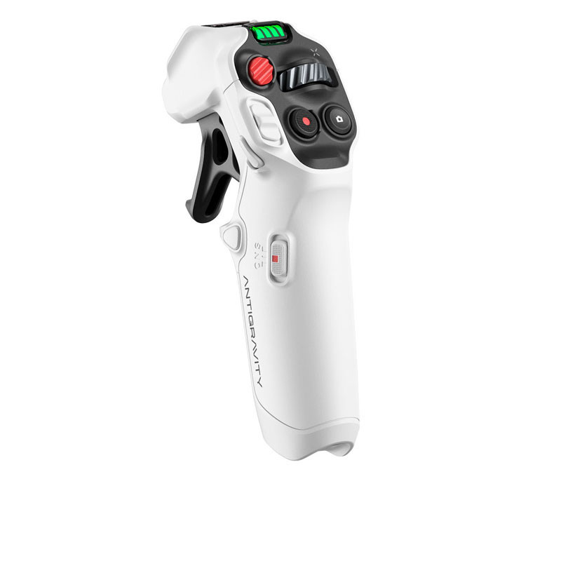¿No tienes experiencia? No importa. El Grip es un control remoto de una sola mano para el A1, creado para ofrecer un manejo cinético intuitivo. Puedes usar su palanca de vuelo, la rueda de desplazamiento y los botones, o simplemente sostenerlo como una varita mágica y señalar hacia donde quieres que vuele el dron. En el modo FPV, con vista en primera persona, basta con inclinar la muñeca para que el A1 se incline a la derecha o a la izquierda, tal como en un videojuego. El modo FreeMotion, pensado para cualquier usuario, hace que volar sea tan sencillo como apuntar y presionar el gatillo: extiende el brazo y orienta el Grip en la dirección deseada; el A1 seguirá esa trayectoria. Señálalo hacia arriba para ganar altitud o hacia los lados para un desplazamiento lateral, e incluso puedes girar lentamente mientras vuelas de lado para obtener una toma orbital del sujeto.