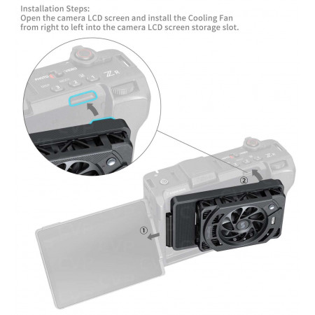 El ventilador SmallRig para Nikon ZR 5874 está diseñado para evitar el sobrecalentamiento de la cámara, lo que permite grabar videos de alta resolución durante más tiempo. Combina una velocidad de 7000 RPM con tecnología TEC para una disipación de calor eficaz, evitando el apagado térmico. Ofrece dos velocidades, alta y baja, para diferentes escenarios de disparo, y se instala y desinstala fácilmente gracias a su soporte a presión sin herramientas, lo que facilita el acceso a la pantalla LCD de la cámara.