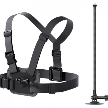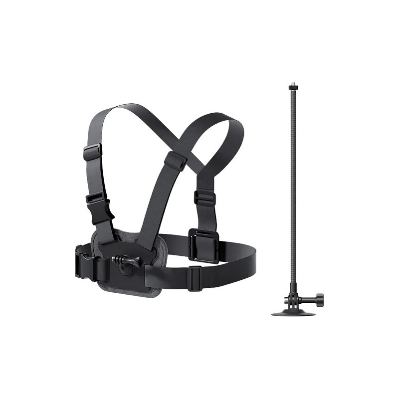 El paquete incluye una extensión para el casco y una correa para el pecho, que te permiten fijar la cámara directamente al cuerpo y conseguir tomas desde perspectivas en primera o tercera persona.