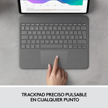 - Trackpad amplio, haz clic donde sea: esta funda con teclado para iPad posee un trackpad de precisión y fiable que te permite emplear la superficie entera para trabajar y usar los gestos Multi-Touch