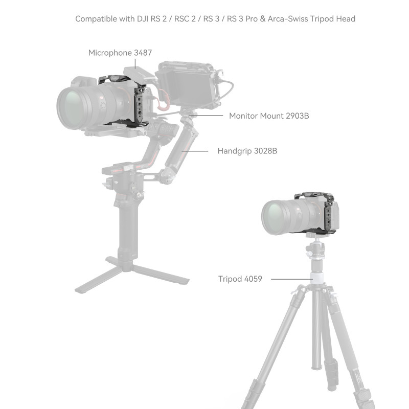 · Opciones de montaje versátiles: múltiples puntos de montaje para varios accesorios como manijas, micrófonos, luces LED y monitores.