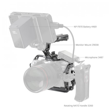 El SmallRig Cage Kit 5197 está diseñado específicamente para la Canon EOS R6 Mark II, proporcionando una solución completa para la protección y expansión de tu cámara. Este kit incluye una jaula, un asa superior y una abrazadera para cables, ofreciendo múltiples puntos de montaje para accesorios.