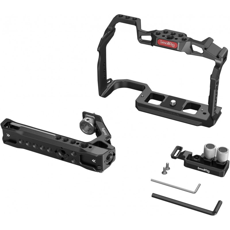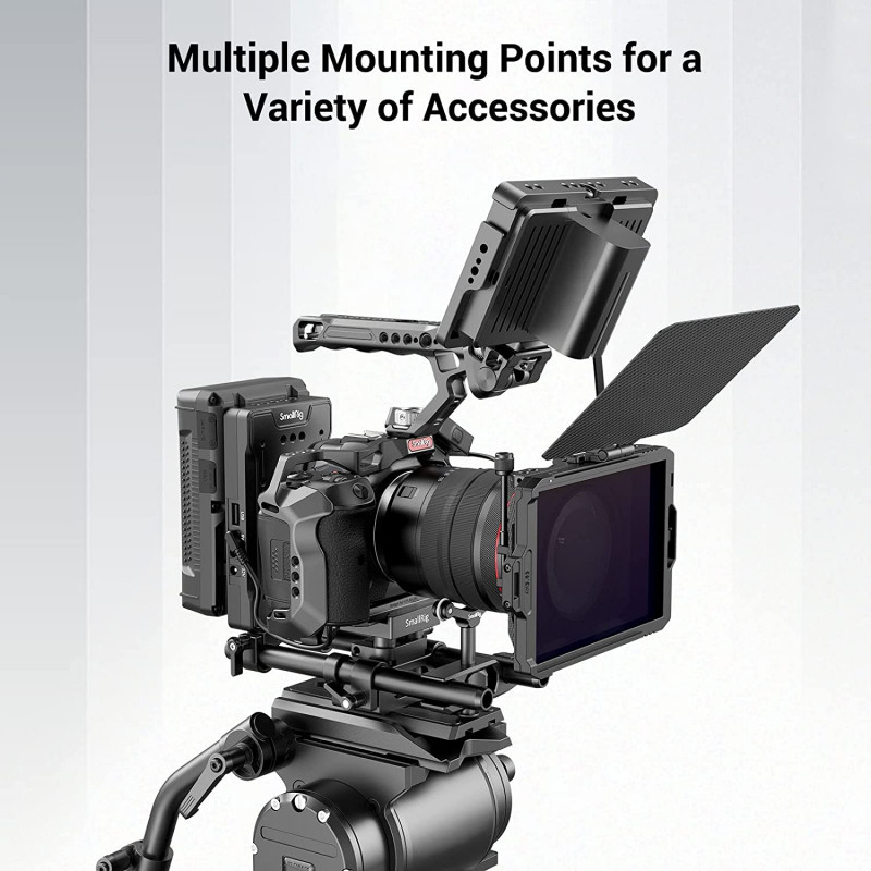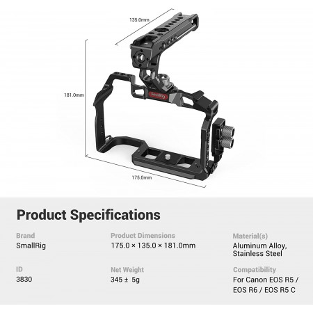 Kit Handheld R5/R6/R5 C: kit de Jaula de SMALLRIG para Canon R5/R6/R5 C 3830 es diseñado para facilitar el disparo de ángulo bajo. Este kit incluye una jaula especial, un cable clamp y un top handle para la norma de ARRI