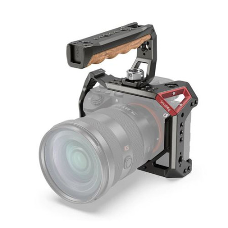 SmallRig Camera Cage and Handle Kit para Sony A7 III y A7R III KCCS2694 cuentan con una nueva apariencia del acabado verde oliva oscuro. Está diseñado para proteger y agregar accesorios a su cámara Sony a7 III o a7R III. La jaula se monta en la cámara con un tornillo de 1/4”-20 en la parte inferior y un segundo bloqueo M2.5 en el costado, con almohadillas de goma en la placa base para evitar rayones. La jaula mantiene el acceso a los controles y puertos de la cámara y viene con una variedad de opciones de montaje que incluyen orificios de 1/4”-20 y 3/8”-16, orificios de ubicación ARRI, una zapata fría y ranuras para muñequeras o correas para los hombros. Un destornillador incluido está diseñado para apretar o quitar los tornillos tanto en la parte inferior como en el lateral. El mango se asegura en la parte superior o lateral de la jaula con un tornillo de mariposa incluido que tiene un tornillo de 3/8"-16 a juego y pasadores de ubicación dobles, para un agarre cómodo y sólido.