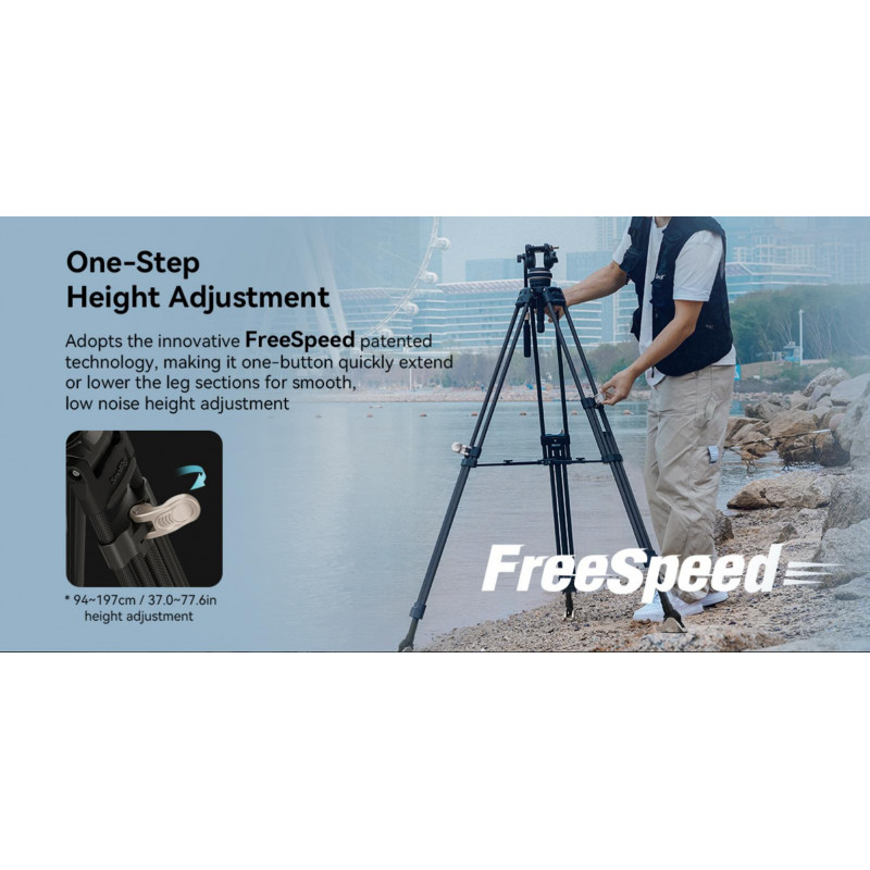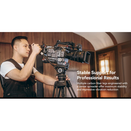 El kit de trípode de video de fibra de carbono SmallRig 3989 Heavy-Duty FreeBlazer incluye un cabezal de video con un sistema de amortiguación ajustable que permite movimientos de paneo suaves a diferentes velocidades. Su sistema de contrapeso para paneo e inclinación, con una altura de centro de gravedad de 55 mm, facilita el control preciso de cámaras y equipos de hasta 8 kg, asegurando un balance dinámico óptimo. El cabezal soporta hasta 10 kg.