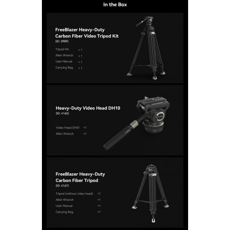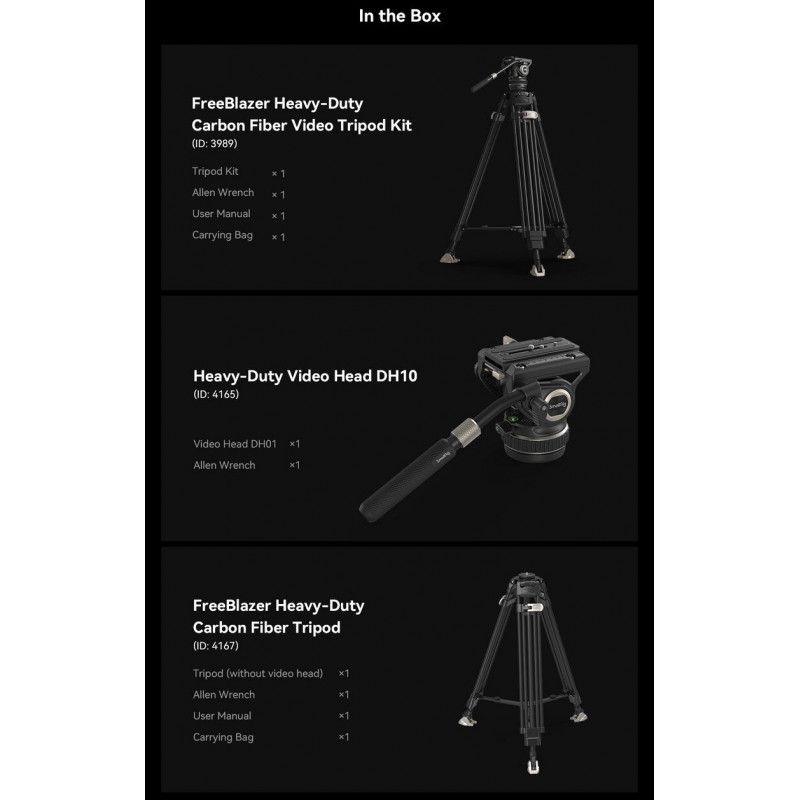 - 1x SmallRig FreeBlazer Trípode de fibra de carbono de alta resistencia 4167 (incluye separador central).