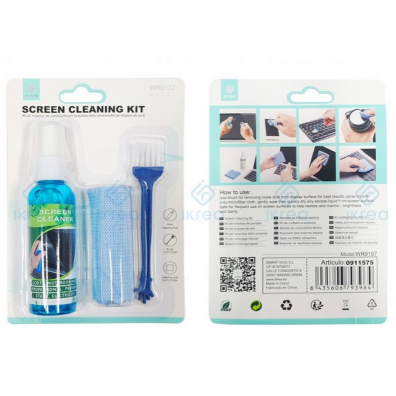 El Kit de Limpieza Ikrea de Pantallas 3 en 1 (modelo WR9157) es la solución perfecta para mantener tus dispositivos electrónicos libres de polvo, huellas y manchas. Diseñado específicamente para pantallas delicadas, ofrece una limpieza profunda y segura sin dejar residuos ni arañazos.