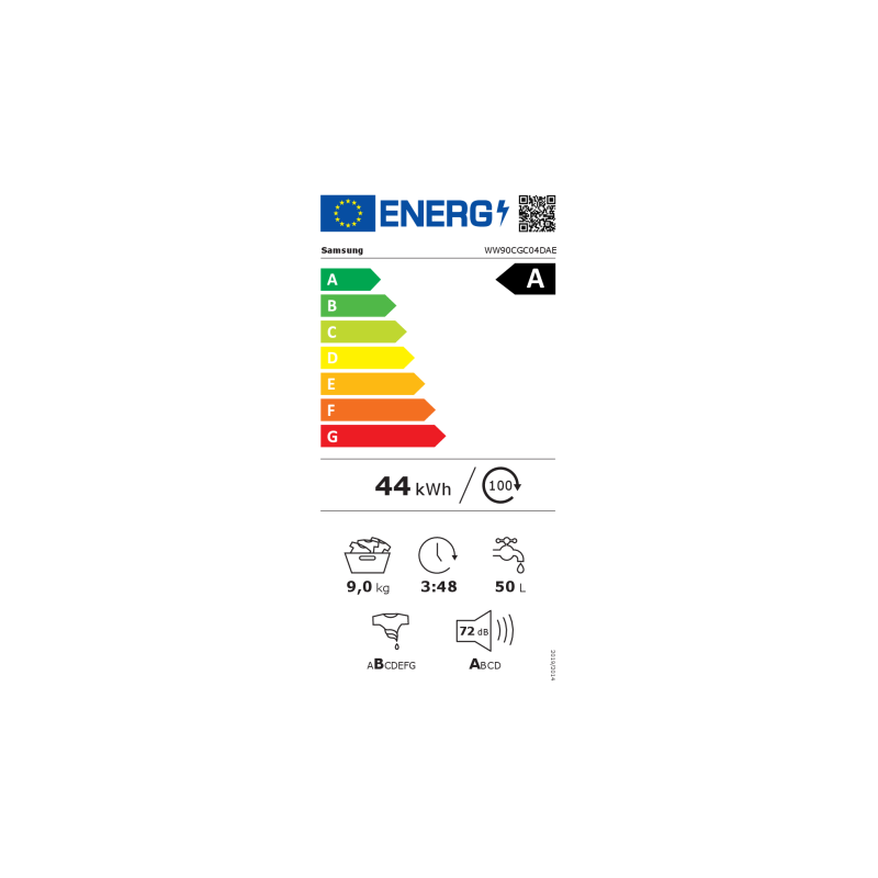 La lavadora Samsung WW90CGC04DAEEC redefine la eficiencia en el lavado, presentando una avanzada clasificación energética Clase A que minimiza el consumo eléctrico con tan solo 44 kWh por cada 100 ciclos. Diseñada para hogares modernos, su capacidad de 9 kg y una velocidad de centrifugado de 1400 rpm aseguran resultados impecables y un secado más rápido de tus prendas.