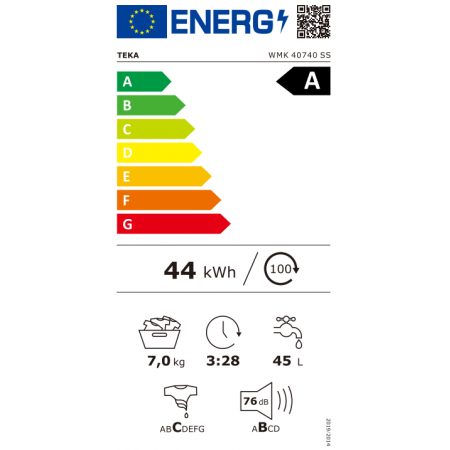 La lavadora Teka WMK 40740 (modelo 113910017) es una solución de lavado de carga frontal diseñada para ofrecer un rendimiento excepcional y una eficiencia energética óptima. Con una capacidad de 7 kg y una velocidad máxima de centrifugado de 1200 rpm, es ideal para el uso diario en cualquier hogar.