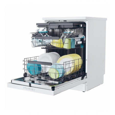 Optimiza tu cocina con el lavavajillas Candy CF 5C7F1W C, diseñado para ofrecer una limpieza profunda y eficiente. Con una generosa capacidad para 15 servicios, es la solución perfecta para familias numerosas o para quienes disfrutan de organizar comidas en casa, asegurando que toda tu vajilla quede impecable en una sola carga.
