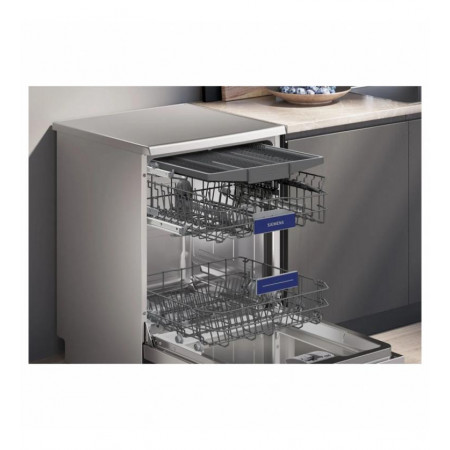 - Flexibilidad interior: Cestillo Duo, parrillas totalmente abatibles y el sistema RackMatic® facilitan la carga de todo tipo de vajilla, incluyendo accesorios especiales para copas, tazas y cubiertos. Dispone también de una práctica bandeja para cubiertos.