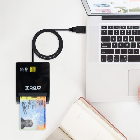 El lector de tarjetas DNIe TOOQ TQR-210 en color negro te permite realizar gestiones online de forma rápida y segura desde tu ordenador. Compatible con el DNI electrónico español y otras tarjetas inteligentes, este lector es la solución perfecta para acceder a servicios de la administración pública, realizar trámites bancarios y firmar documentos digitalmente.