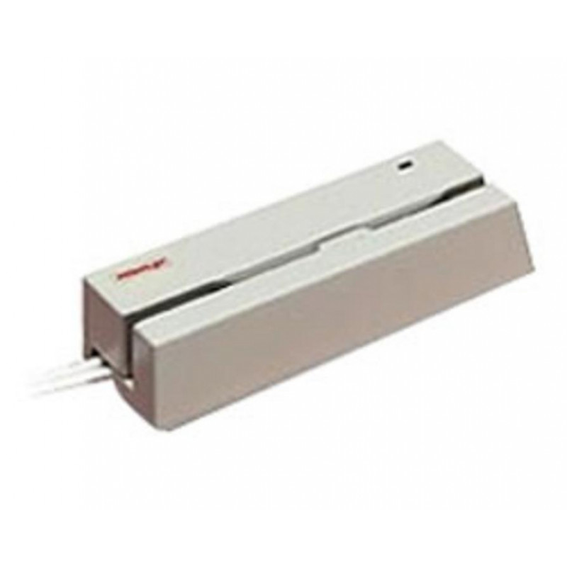 Lector de tarjetas magnéticas Posiflex, ideal para puntos de venta. Conexión PS2, diseño en color negro y modelo MR-2000N.