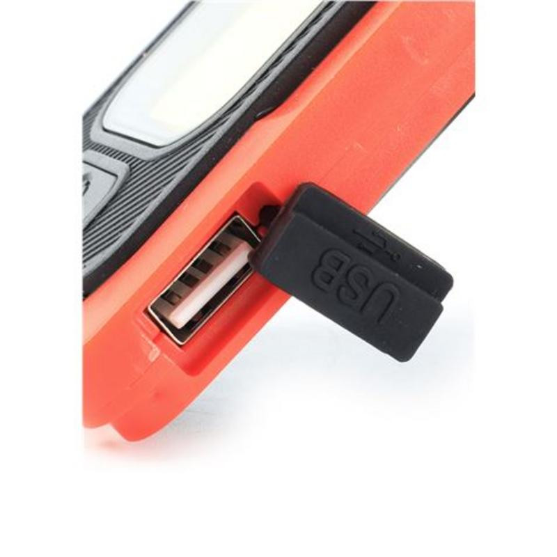 Equipada con una luz COB de 5W que proporciona unos impresionantes 700 lúmenes, esta linterna asegura una iluminación amplia y brillante, ideal para alumbrar grandes áreas. Además, cuenta con un LED adicional para una luz más focalizada o de menor intensidad. Su robusta batería de litio de 4000mAh garantiza una autonomía prolongada de 3 a 5 horas, dependiendo del modo de uso, para que la luz te acompañe durante más tiempo.