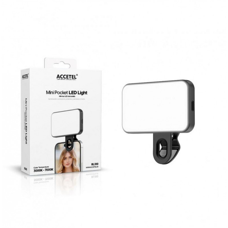 La Mini Luz de LED Accetel RL100 es el accesorio esencial para creadores de contenido y amantes de la fotografía móvil. Su diseño de bolsillo la hace increíblemente portátil, permitiéndote llevar una iluminación profesional a donde quiera que vayas. Ideal para mejorar la calidad de tus selfies, videollamadas, vlogs y sesiones de fotografía en entornos con poca luz.