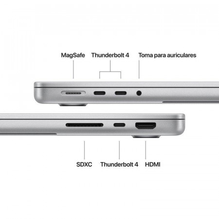 - CONECTIVIDAD COMPLETA: El MacBook Pro incluye tres puertos Thunderbolt 4, un puerto de carga MagSafe 3, ranura para tarjetas SDXC, puerto HDMI y toma para auriculares. Además, admite hasta dos monitores externos.