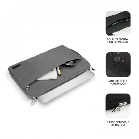 Fabricada con materiales de alta calidad, esta funda protege tu portátil de golpes, arañazos y líquidos, manteniéndolo seguro y en perfecto estado. Su bolsillo frontal con cremallera te permite guardar accesorios como cables, cargadores o un ratón, manteniéndolos organizados y a mano.