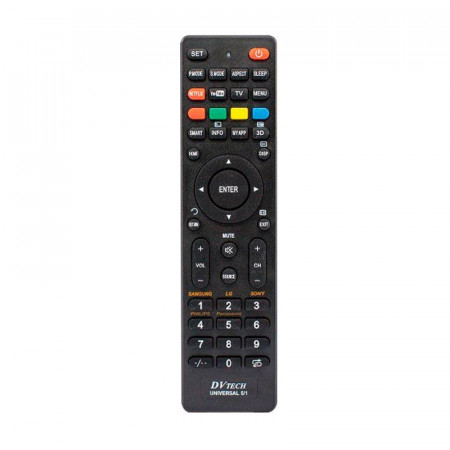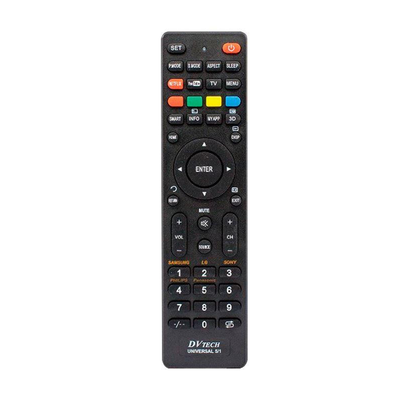 El Mando Universal DV TECH 5 en 1 para TV (DV-MUNI) es la solución perfecta para consolidar el control de tus dispositivos de entretenimiento. Diseñado para ofrecer compatibilidad con una amplia gama de televisores de las marcas más populares, este mando te permite gestionar tu TV Samsung, LG, Sony, Philips o Panasonic con una sola unidad.