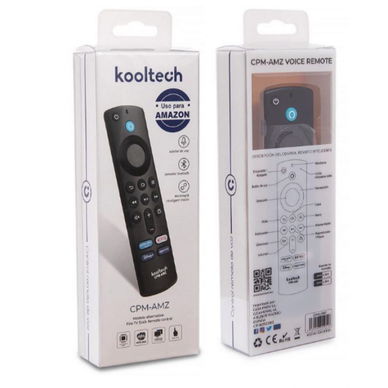 El Mando Kooltech modelo CPM-AMZ es la solución ideal para ampliar o reemplazar el control remoto de tu dispositivo Amazon Fire TV Stick. Este mando a distancia compatible ha sido diseñado para ofrecer una integración perfecta y una experiencia de usuario mejorada, aprovechando al máximo las capacidades de tu Fire TV.