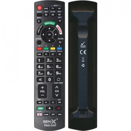 El mando universal Gen-X PAG-2107 ha sido diseñado específicamente para televisores Panasonic, ofreciendo una solución de reemplazo o un segundo mando con la máxima facilidad de uso. Olvídate de complejas programaciones o códigos; este mando está listo para funcionar nada más sacarlo de su embalaje.