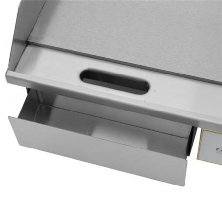 Su amplia superficie de cocción lisa, con unas dimensiones de 548 × 350 mm, es perfecta para preparar una gran variedad de alimentos, desde carnes y pescados hasta verduras y huevos, asegurando cocciones rápidas y homogéneas. La placa de hierro A3, con un grosor de 8 mm, distribuye el calor de manera uniforme por toda la superficie, lo que permite obtener resultados profesionales y consistentes en cada uso.