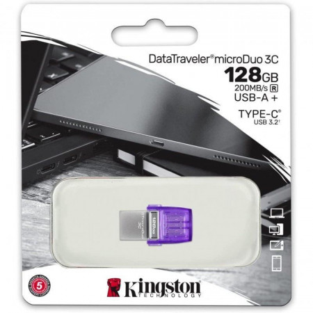 El Kingston DataTraveler microDuo 3C es una solución de almacenamiento versátil y compacta, perfecta para expandir la capacidad de tu smartphone, tablet o computadora. Con su doble interfaz, es compatible con los puertos USB Type-C más recientes y los puertos USB Type-A tradicionales.