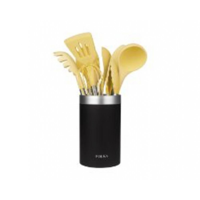 Descubre el set de 9 utensilios de cocina CECOTEC Polka Experience Vulcano. Con piezas en Amarillo, recubrimiento Soft touch y mangos de Acero, Silicona, Nylon y PP. Incluye Holder Polka (01180) para una organización impecable.