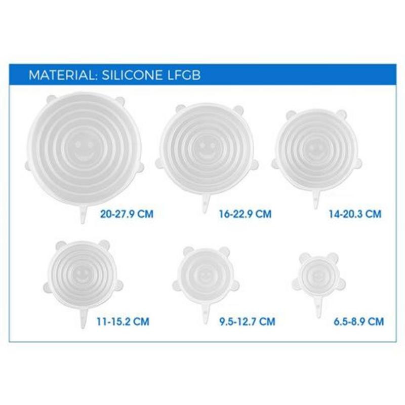 - Gran Versatilidad: El set incluye 6 tamaños diferentes (6, 9, 11, 14, 16, 20 cm de diámetro) para adaptarse a múltiples recipientes, desde pequeños vasos hasta grandes ensaladeras.
