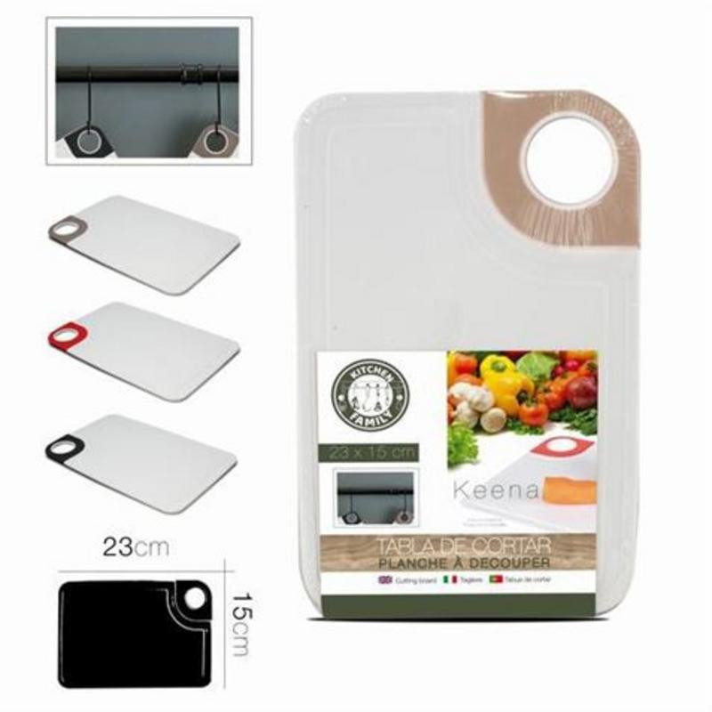 Optimiza tu espacio y tus preparaciones en la cocina con esta práctica tabla de cortar plástica. Su diseño compacto, con unas medidas de 23x15 cm, la hace perfecta para el uso diario, permitiéndote picar y trocear con comodidad sin ocupar demasiado espacio en tu encimera.