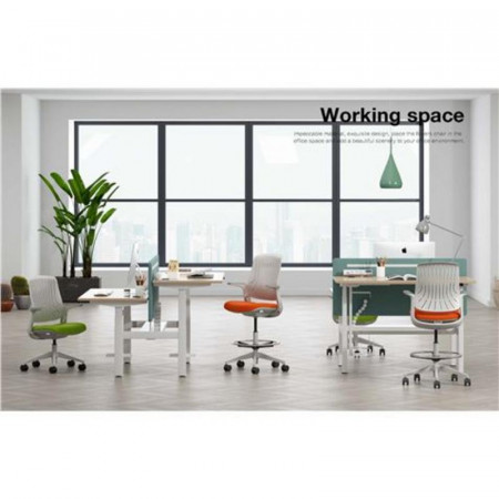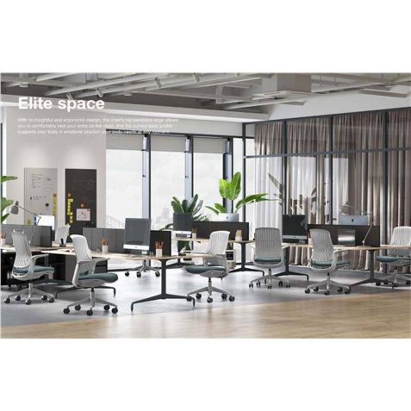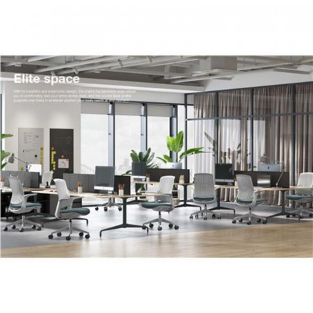 - Materiales de Alta Calidad: El respaldo cuenta con un tejido de malla elástica con propiedades antibacterianas, favoreciendo la transpiración y la higiene. El asiento está revestido con tela de la serie LY, destacando por su grado 5 de impermeabilidad y grado 6 de resistencia al aceite, facilitando su mantenimiento y prolongando su vida útil.