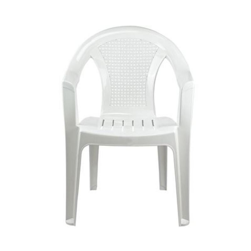 Su diseño ergonómico incorpora reposabrazos para un confort adicional, permitiéndote disfrutar de largas conversaciones o comidas con total relajación. Además, su característica apilable facilita el almacenamiento cuando no está en uso, ahorrando espacio y manteniendo la organización. El color blanco puro aporta luminosidad y un toque de modernidad, integrándose sin esfuerzo en diversas decoraciones.