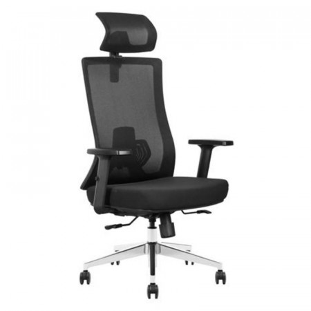 - Materiales Resistentes y Transpirables: Tanto el respaldo como el asiento están tapizados en tela de malla que favorece la circulación del aire, complementados por una robusta base cromada y reposabrazos de PU para una mayor durabilidad y confort.