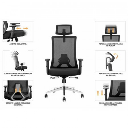 - Ajustabilidad Avanzada: Equipada con un reposacabezas ajustable en altura e inclinación, soporte lumbar regulable en altura y reposabrazos 3D que se ajustan en altura, profundidad y ángulo para un soporte integral.