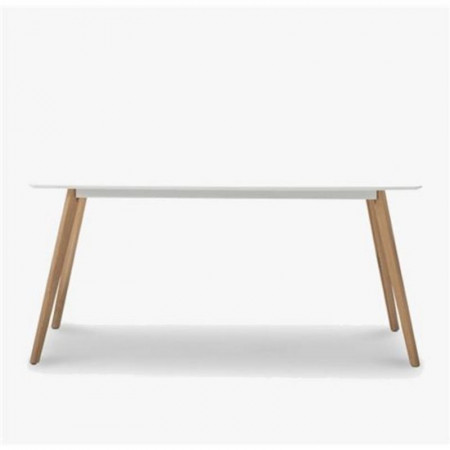 La superficie en un impecable color blanco aporta luminosidad y amplitud a cualquier estancia, mientras que sus sólidas patas de madera de haya no solo garantizan estabilidad y durabilidad, sino que también añaden un toque cálido y natural. La tabla, fabricada en MDF con un espesor de 18mm, es resistente y fácil de limpiar, ideal para el día a día.