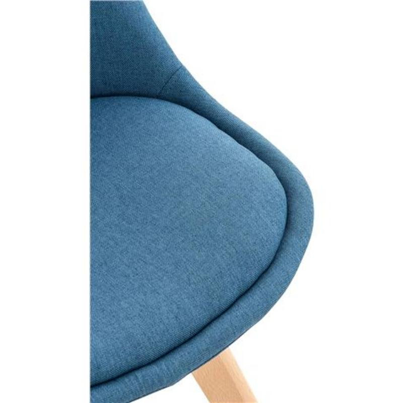 Cada silla ha sido cuidadosamente elaborada con patas macizas de madera, garantizando una base robusta y duradera. Su asiento y respaldo están recubiertos con una exquisita tela de terciopelo azul oscuro, que no solo aporta una textura agradable al tacto sino también una presencia visual inconfundible. Además, disponen de un cojín acolchado integrado, proporcionando un confort óptimo para largas sobremesas o reuniones.