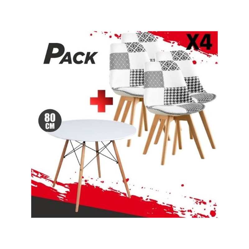 Descubre la combinación perfecta de estilo y funcionalidad con el pack de mobiliario Muvip, diseñado para elevar la estética de tu comedor o cocina. Este conjunto incluye una mesa redonda de diseño y cuatro sillas ergonómicas, creadas para ofrecer la máxima comodidad y un toque distintivo a tu hogar.
