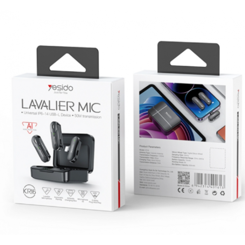 El micrófono lavalier inalámbrico dual Yesido KR16 es la solución perfecta para creadores de contenido, periodistas y profesionales que buscan una calidad de audio superior y libertad de movimiento. Este sistema innovador incluye dos micrófonos transmisores compactos y un receptor Lightning, garantizando una compatibilidad perfecta con tu iPhone o iPad.