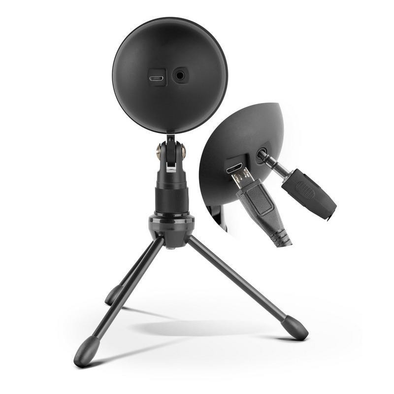 El sistema basculante del Kimu Pro te permite inclinarlo para adaptarlo a tus necesidades. Incorpora un botón de encendido y apagado del mute en la parte superior, con un indicador LED para saber si está activado. Su conexión micro USB ofrece versatilidad para usarlo con diversos dispositivos.