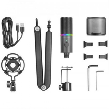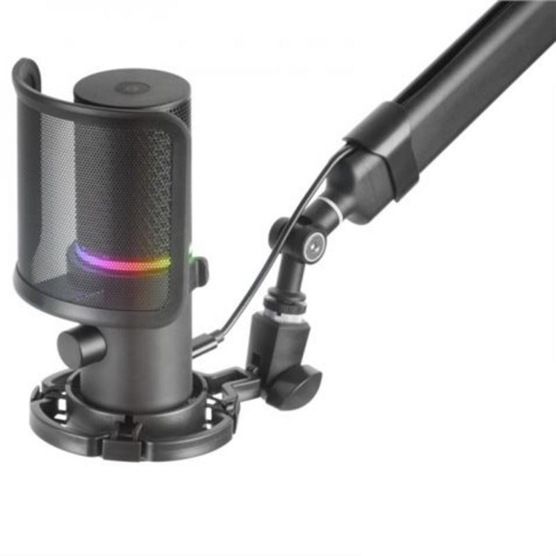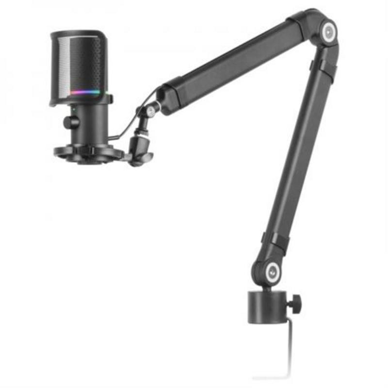- Brazo Mecánico Regulable Omnidireccional: Coloca el micrófono en la posición perfecta para tu configuración, garantizando la máxima comodidad y una captura de sonido óptima.