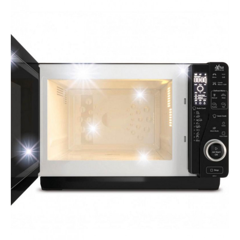 Equipado con un panel de control electrónico intuitivo, el MWF 421 BL ofrece programas preestablecidos como el exclusivo Chef Menú, que te permite acceder a 100 recetas con solo pulsar un botón. La función Auto Cook ajusta automáticamente los parámetros de cocción, garantizando resultados perfectos. Además, cuenta con un temporizador preciso y un bloqueo de seguridad para niños, proporcionando tranquilidad en tu hogar.