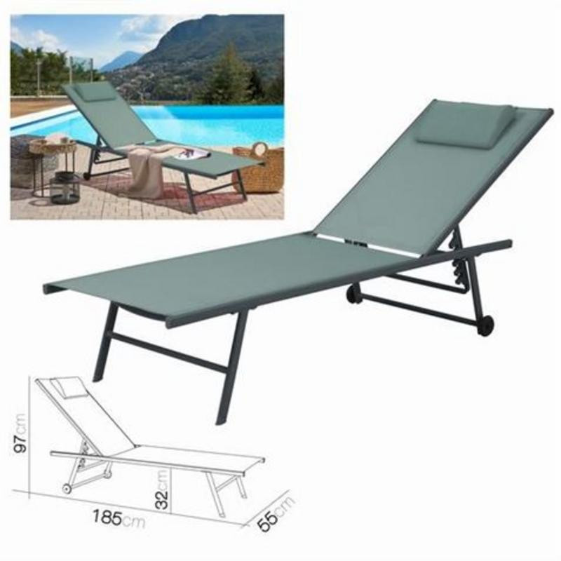 Fabricada con materiales resistentes a la intemperie, esta tumbona combina durabilidad con un diseño práctico y atractivo en color caqui. La inclusión de una almohadilla suave garantiza un confort adicional, invitándote a prolongar tus momentos de descanso. Además, su diseño inteligente incorpora ruedas robustas que facilitan su movimiento, permitiéndote cambiarla de ubicación sin esfuerzo y disfrutar de la sombra o el sol según prefieras.