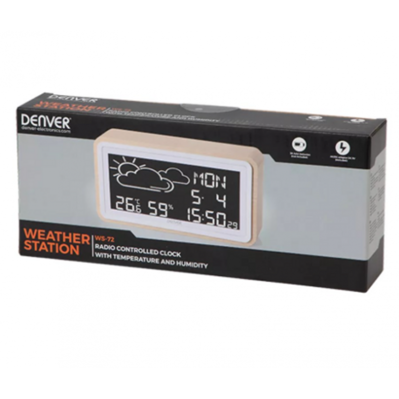 La Estación Meteorológica Digital Denver WS-72 es la combinación perfecta de funcionalidad y diseño. Su elegante carcasa de madera complementa cualquier hogar u oficina, mientras que su clara pantalla LCD digital le mantiene informado sobre las condiciones climáticas actuales.